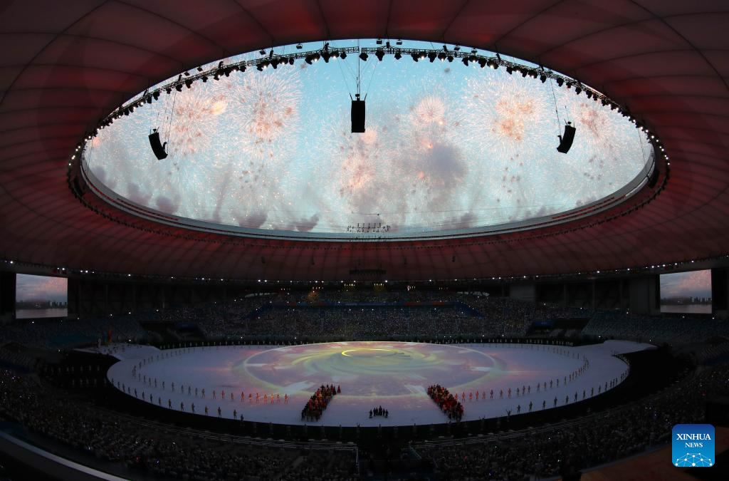 Fireworks are seen during the opening ceremony of the 31st FISU Summer World University Games in Chengdu, southwest China's Sichuan Province, July 28, 2023. (Xinhua/Huang Wei)