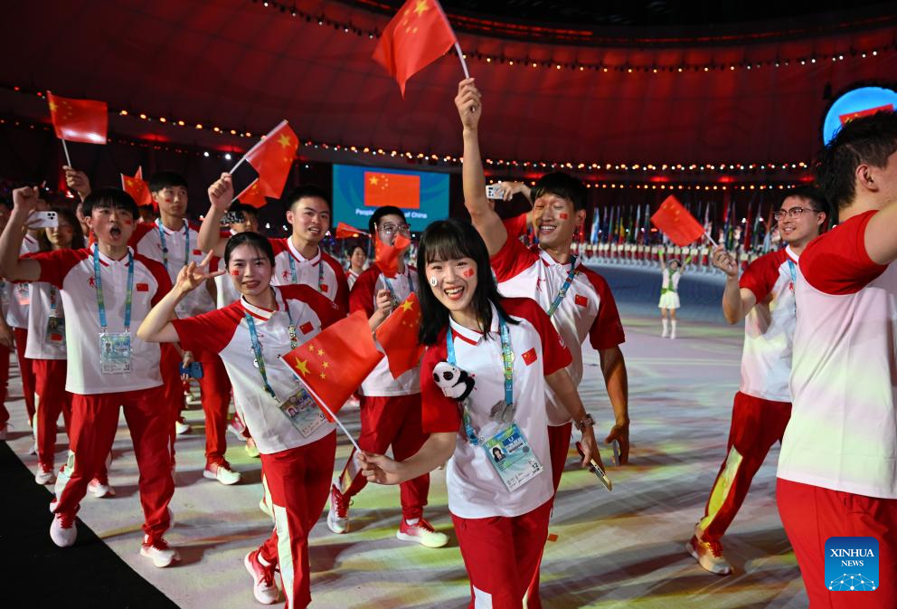 Members of China's delegation march during the opening ceremony of the 31st FISU Summer World University Games in Chengdu, southwest China's Sichuan Province, July 28, 2023. (Xinhua/Wang Xi)