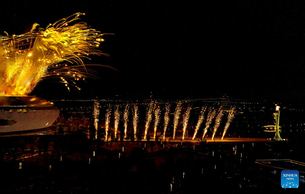 Fireworks are seen during the opening ceremony of the 31st FISU Summer World University Games in Chengdu, southwest China's Sichuan Province, July 28, 2023. (Xinhua/Jinmei Duoji)