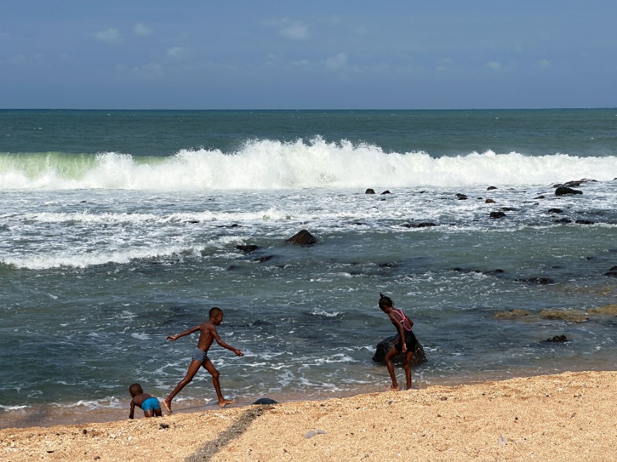 Children play on a beach in Sao Tome, Sao Tome and Principe, July 12, 2023. (Xinhua/Han Xu)