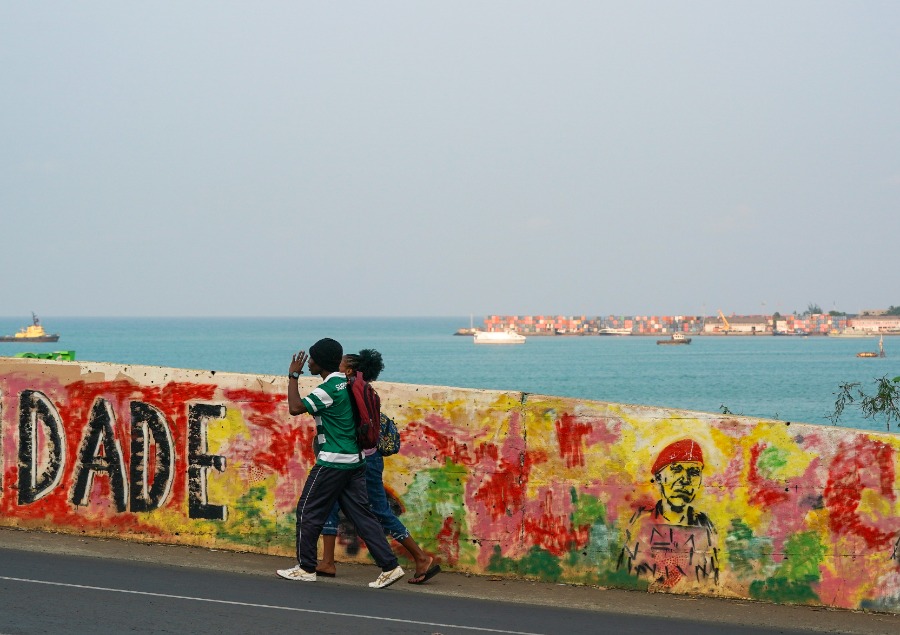 People walk on a street in Sao Tome, Sao Tome and Principe, July 14, 2023. (Xinhua/Han Xu)