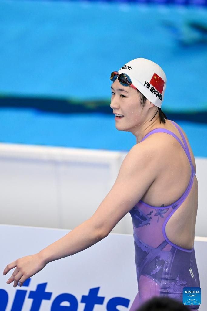 Ye Shiwen of China reacts after the women's 200m breaststroke semifinal at the World Aquatics Championships in Fukuoka, Japan, July 27, 2023. (Xinhua/Xu Chang)