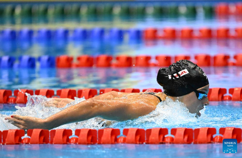 Summer McIntosh of Canada competes during the women's 200m butterfly final at the World Aquatics Championships in Fukuoka, Japan, July 27, 2023. (Xinhua/Zhang Xiaoyu)