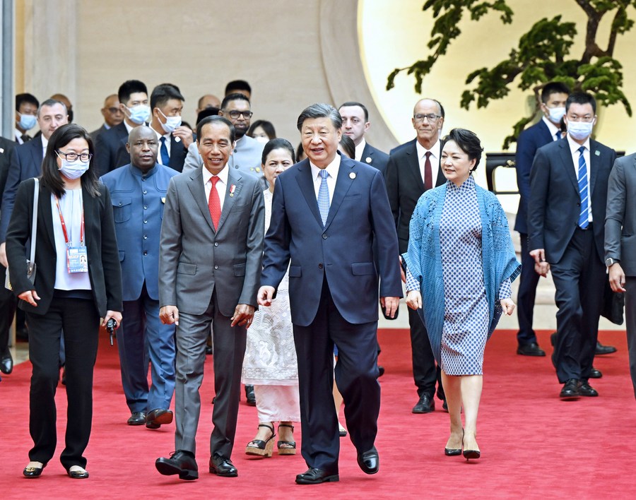 Chinese President Xi Jinping, his wife Peng Liyuan and guests enter a venue for a banquet in Chengdu, capital city of southwest China's Sichuan Province, July 28, 2023. (Xinhua/Yin Bogu)