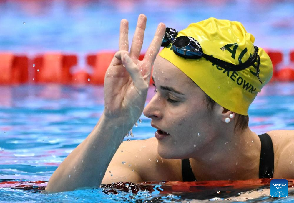FUKUOKA, Japan, July 29 (Xinhua) -- Olympic champion Kaylee McKeown of Australia completed her clean sweep of all three women's backstroke golds at the World Aquatics Championships as she retained the 200m title here on Saturday.