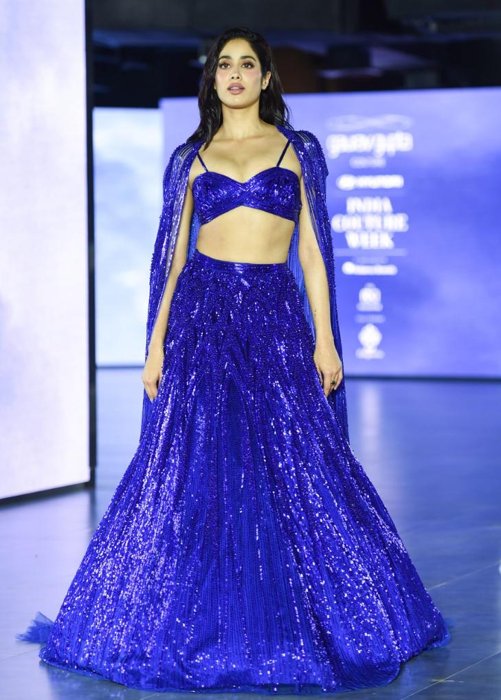Bollywood actress Janhvi Kapoor displays a creation by Indian designer Gaurav Gupta during the FDCI India Couture Week 2023 in New Delhi, India, on July 27, 2023. (Photo by Javed Dar/Xinhua)