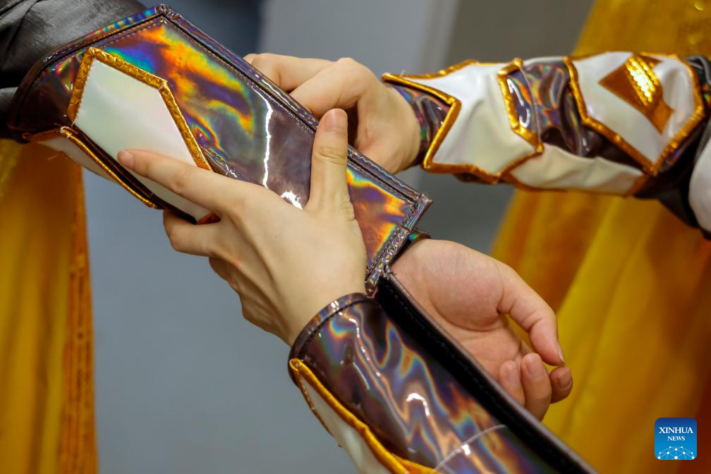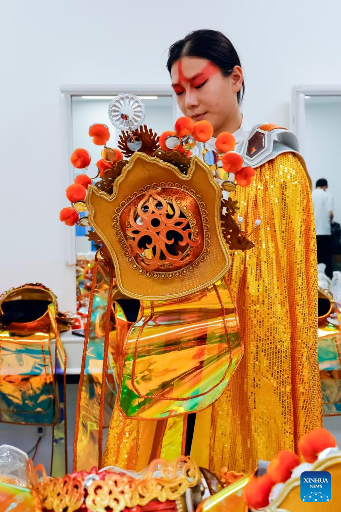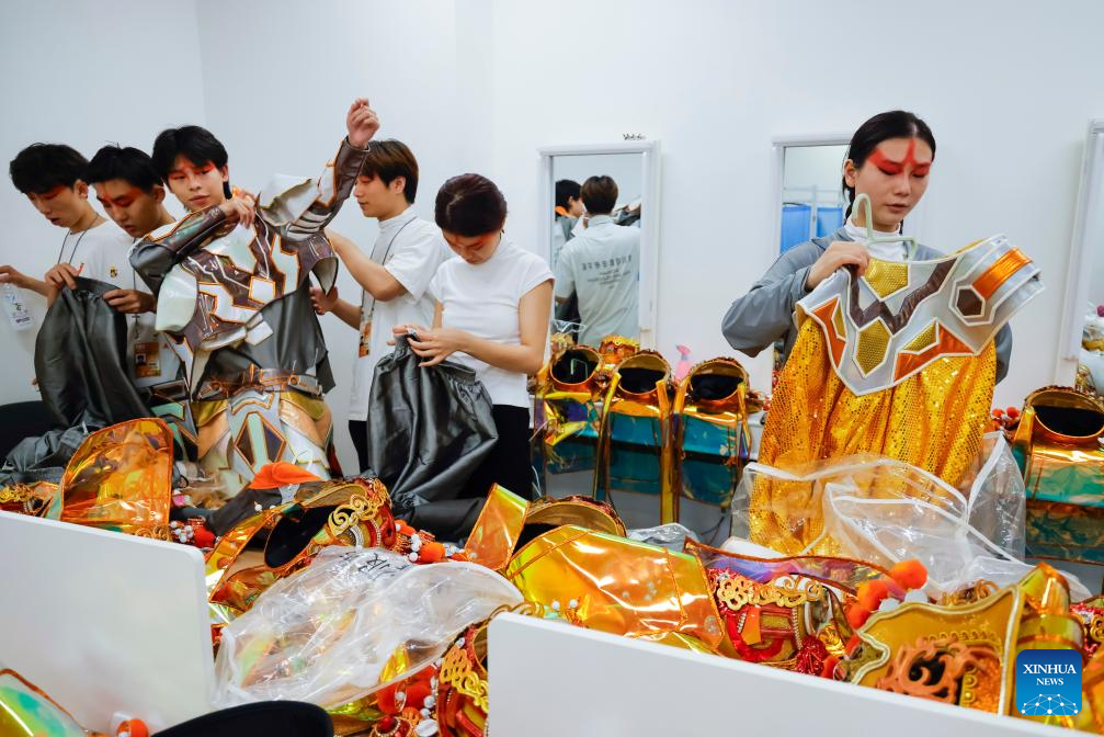 Ren Xin prepares her gears prior to an opening ceremony rehearsal in Chengdu of southwest China's Sichuan Province, on July 23, 2023. Ren Xin, a 19-year-old college student, was fascinated with dancing since her childhood. She was one of the actors and actresses who performed the traditional "bian lian", or face-changing during the opening ceremony of the 31st FISU Summer World University Games in Chengdu on July 28, 2023.