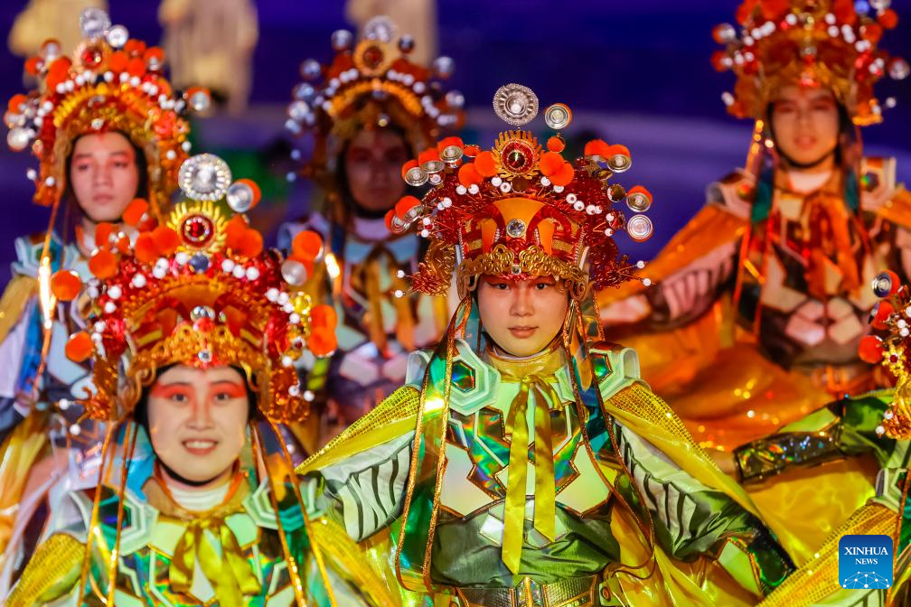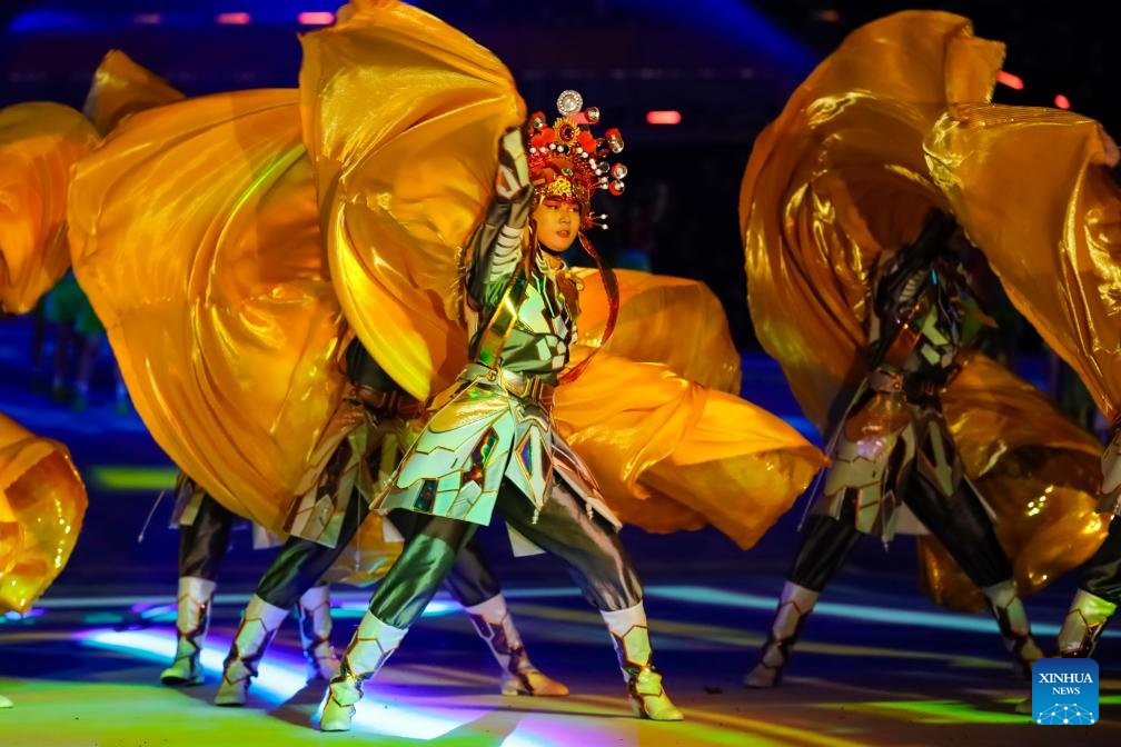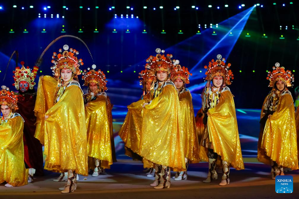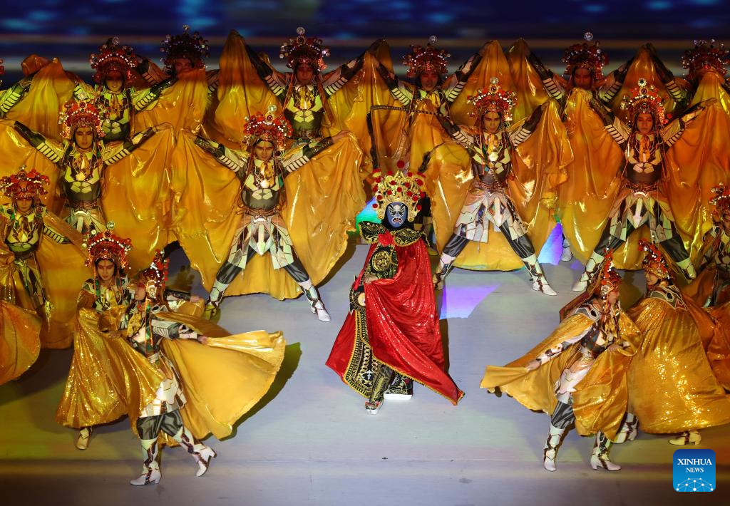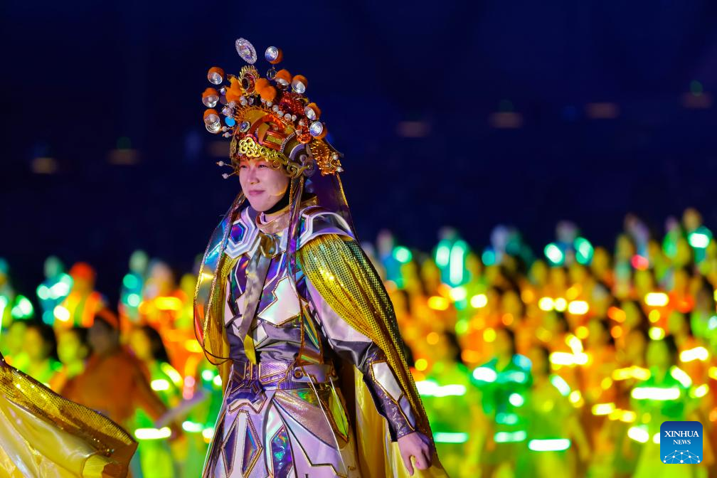 Actors and actresses perform "bian lian" during the opening ceremony in Chengdu of southwest China's Sichuan Province, on July 28, 2023. Ren Xin, a 19-year-old college student, was fascinated with dancing since her childhood. She was one of the actors and actresses who performed the traditional "bian lian", or face-changing during the opening ceremony of the 31st FISU Summer World University Games in Chengdu on July 28, 2023.