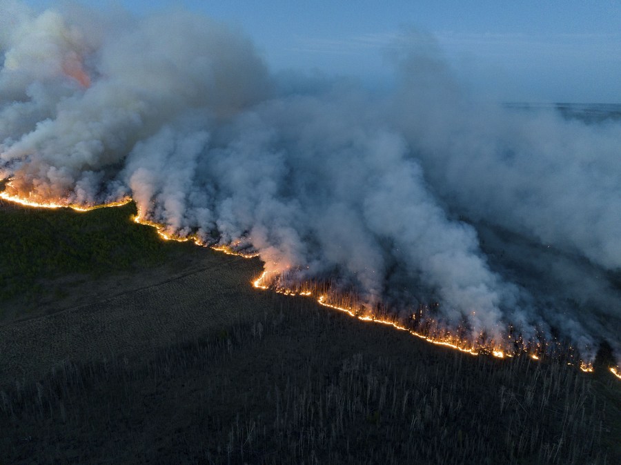 The greenhouse gas emissions from the raging wildfires in Canada have exceeded one billion metric tons of carbon dioxide equivalent (CO2e), according to a study by Chinese scientists led by Liu Zhihua, a researcher from the Institute of Applied Ecology, Chinese Academy of Sciences.