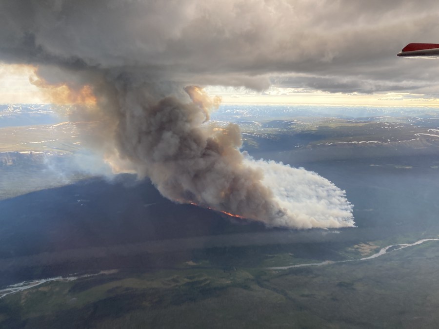 Aerial photo taken on June 24, 2023 shows wildfires near Tomias Mountain, British Columbia, Canada. (BC Wildfire Service/Handout via Xinhua)
