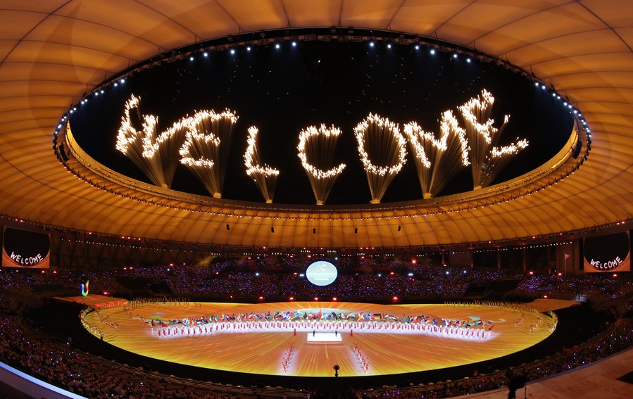 A performance is held during the opening ceremony of the 31st FISU Summer World University Games in Chengdu, southwest China's Sichuan Province, July 28, 2023. (Xinhua/Li Xin)