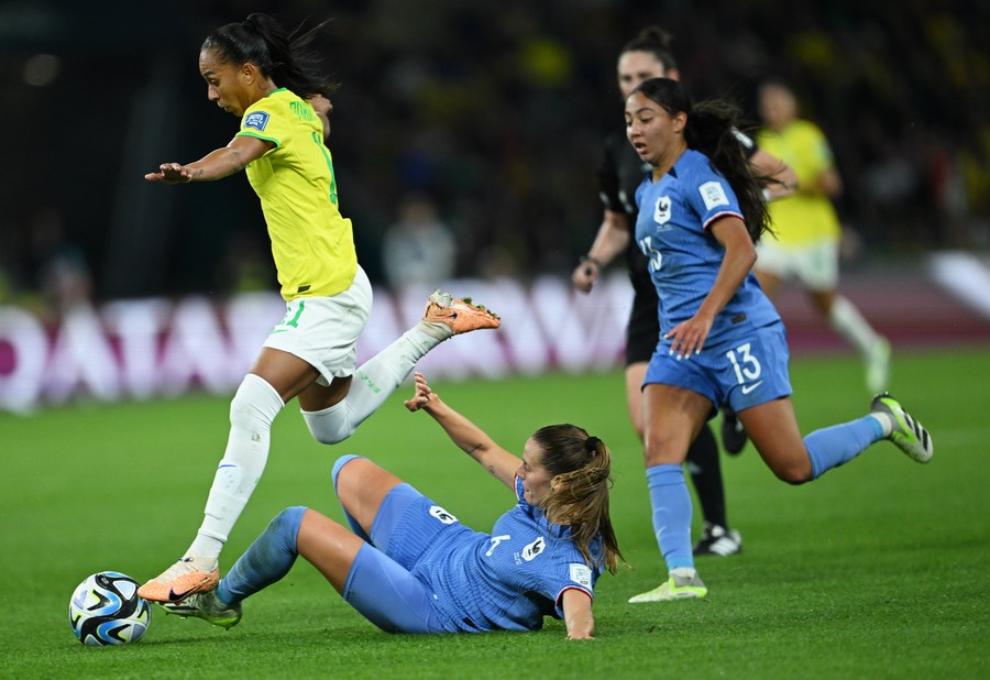BRISBANE, Australia, July 29 (Xinhua) -- Captain Wendie Renard scored an 83rd-minute winner to gift France a crucial 2-1 win over Brazil here on Saturday at the FIFA Women's World Cup.