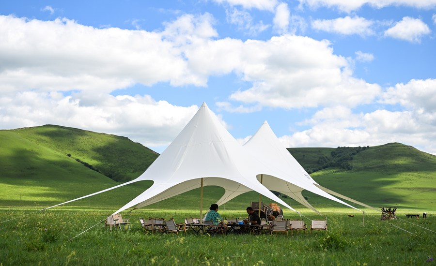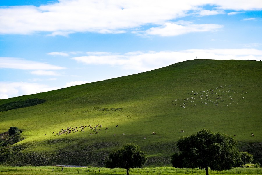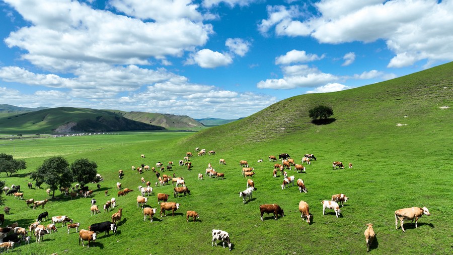 This photo taken on July 24, 2023 shows the scenery of Ulan Mod grassland in Horqin Right Wing Front Banner, Hinggan League, north China's Inner Mongolia Autonomous Region. (Xinhua/Bei He)