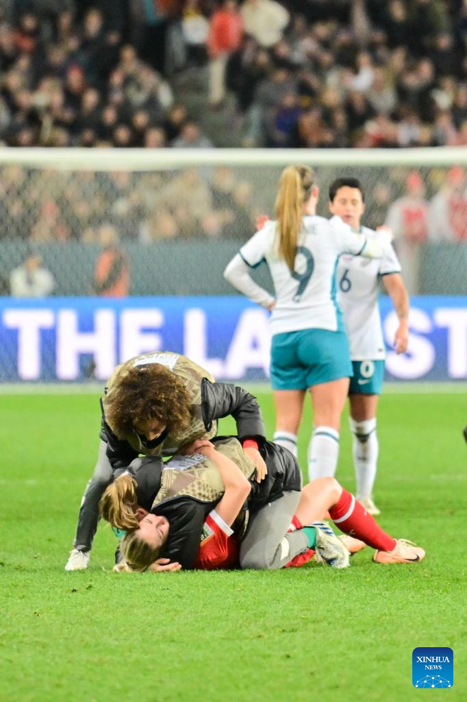 Players of Switzerland celebrate after the group A match between Switzerland and New Zealand at the 2023 FIFA Women's World Cup in Dunedin, New Zealand, July 30, 2023. (Xinhua/Zhu Wei)