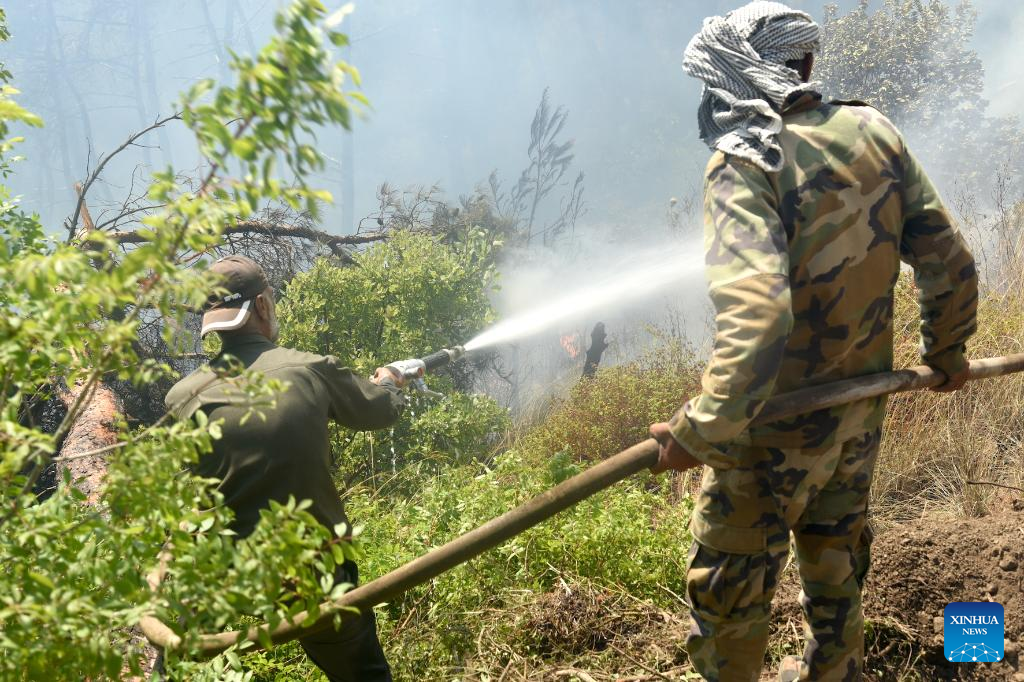LATAKIA, Syria, July 30 (Xinhua) -- U.S. sanctions have impeded the ongoing firefighting efforts in the northwestern Syrian province of Latakia, where wildfires are devouring swathes of forest land and firefighting supplies are in urgent need.