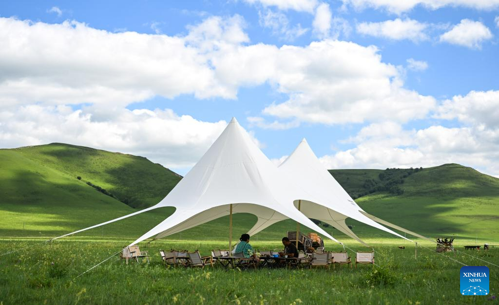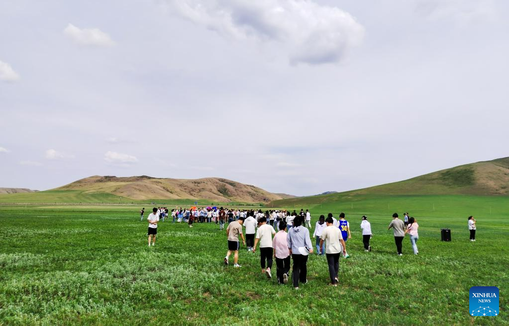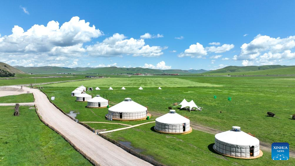 This year, Hinggan League organized a college student tourism festival and funded ten herdsman tourism projects, including Uu Sodo's hostel, as part of an investment support initiative. This financial aid enabled Uu Sodo to construct new yurts and expand his hostel. As of now, the hostel boasts 13 yurts, 10 tents, and 2 awnings, and has welcomed over 3,200 guests. (Xinhua/Bei He)