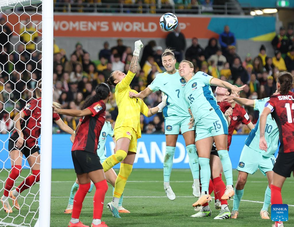 SYDNEY, July 31 (Xinhua) -- Co-host Australia trounced Canada 4-0, advancing to the round of 16, while Nigeria also moved forward despite a 0-0 draw with debutant Ireland at the FIFA Women's World Cup on Monday.