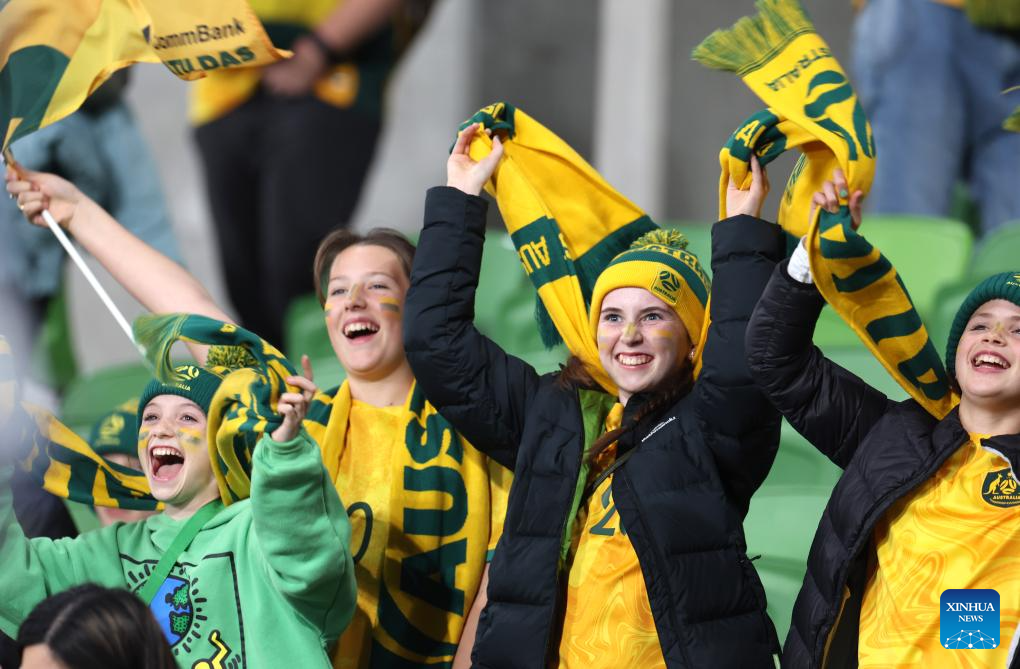 Supporters of Australia cheer for the team before the Group B match between Canada and Australia at the 2023 FIFA Women's World Cup in Melbourne, Australia, July 31, 2023. (Xinhua/Ding Xu)