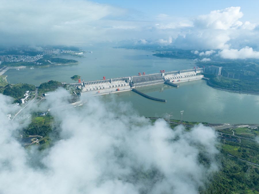 This aerial photo taken on July 30, 2023 shows the Three Gorges Dam in Yichang City, central China's Hubei Province. (Photo by Lei Yong/Xinhua)