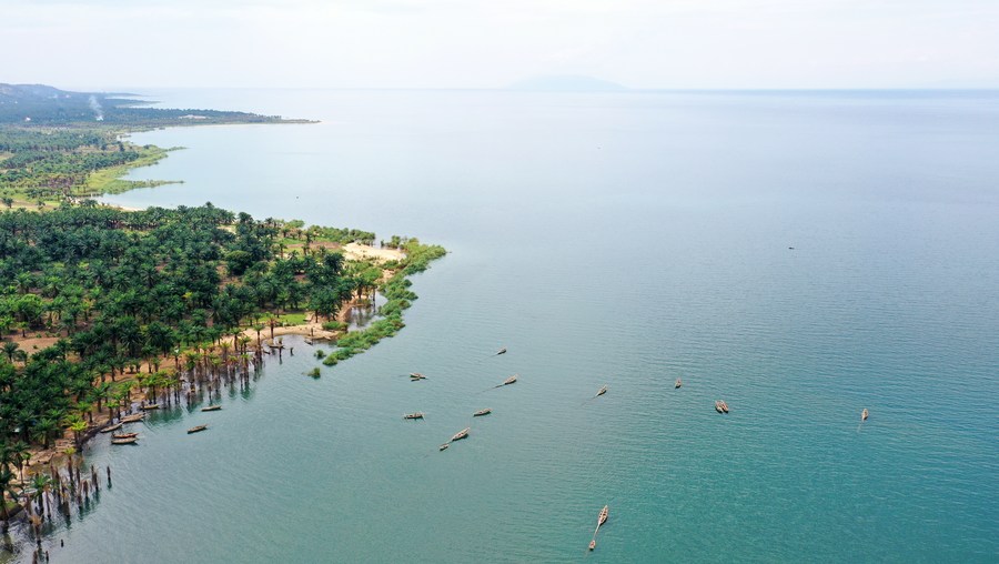 This aerial photo taken on Nov. 3, 2022 shows Lake Tanganyika in Rumonge province, Burundi. (Photo by Pu Cheng/Xinhua)