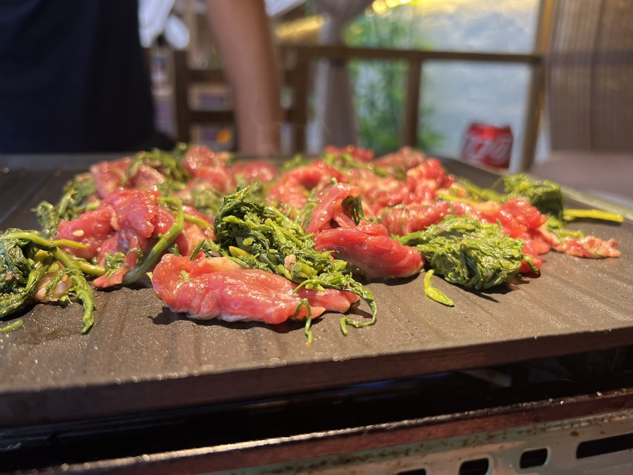 "Barbecued beef mixed with Artemisia willow buds was once unique to the Daur ethnic group, but was gradually accepted by other ethnic groups and so became a traditional dish here," she said. The campsite and cafe outside the village are both new, but it is an old dish that brings tourists from across China to Qiqihar to enjoy these new facilities.