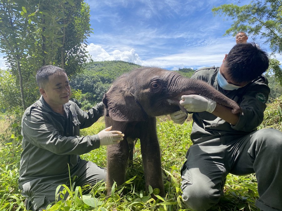 Villagers gave the feeble calf water and food immediately before contacting the rescue center. Knowing that the calf needed milk, a villager brought three goats from 100 kilometers away. The elephant was born in the Year of the Goat, and fed with goat milk, so villagers called it dearly, "Yang Niu," which means "goat girl" in Chinese.