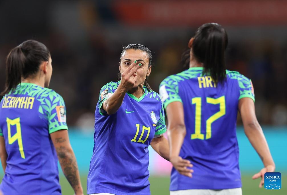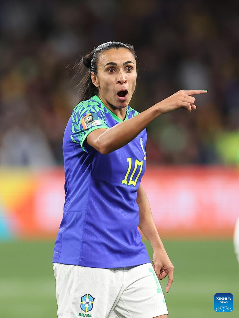 Brazil's Marta gestures during the Group F match between Jamaica and Brazil at the 2023 FIFA Women's World Cup in Melbourne, Australia, Aug. 2, 2023. (Xinhua/Ding Xu)