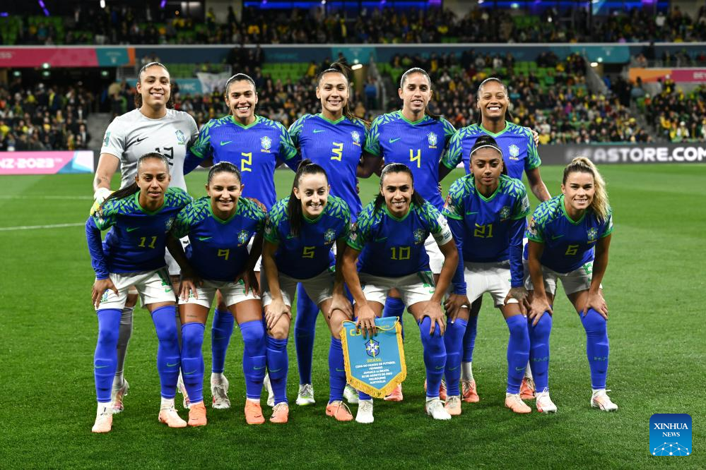 Brazil's starting players pose for photos before the Group F match between Jamaica and Brazil at the 2023 FIFA Women's World Cup in Melbourne, Australia, Aug. 2, 2023. (Xinhua/Mao Siqian)