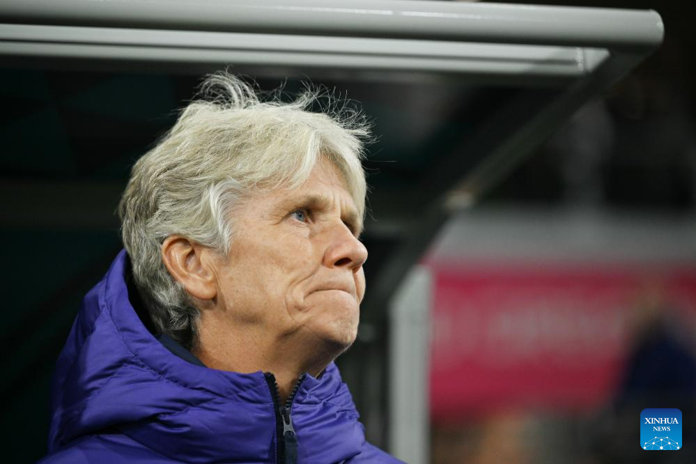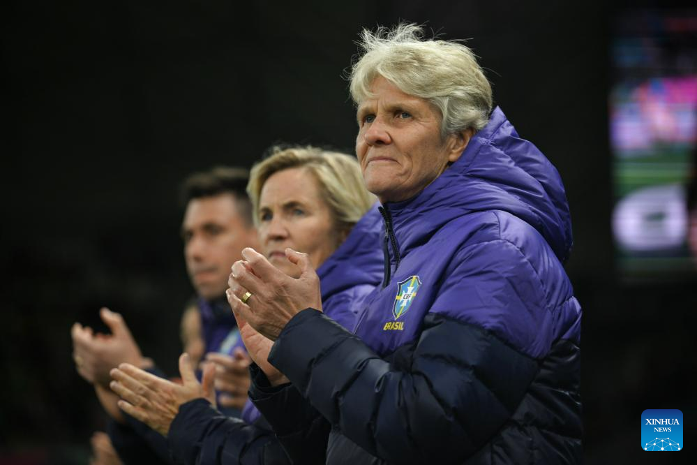 Brazil's head coach Pia Sundhage is seen brfore the Group F match between Jamaica and Brazil at the 2023 FIFA Women's World Cup in Melbourne, Australia, Aug. 2, 2023. (Xinhua/Mao Siqian)