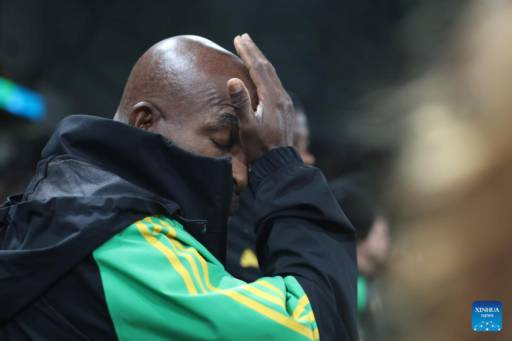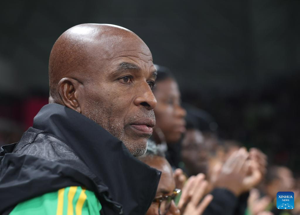Jamaica's head coach Lorne Donaldson reacts before the Group F match between Jamaica and Brazil at the 2023 FIFA Women's World Cup in Melbourne, Australia, Aug. 2, 2023. (Xinhua/Ding Xu)