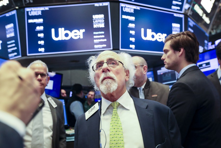 Traders work at the New York Stock Exchange during the initial public offering (IPO) of Uber Technologies Inc., in New York, the United States, May 10, 2019. (Xinhua/Wang Ying)