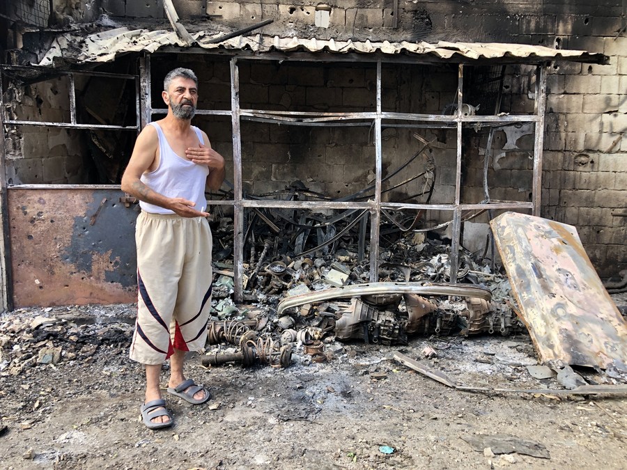 A Palestinian man inspects the damage to his property in the Ain al-Helweh refugee camp near Sidon, southern Lebanon, on Aug. 1, 2023. (Photo by Ali Hashisho/Xinhua)