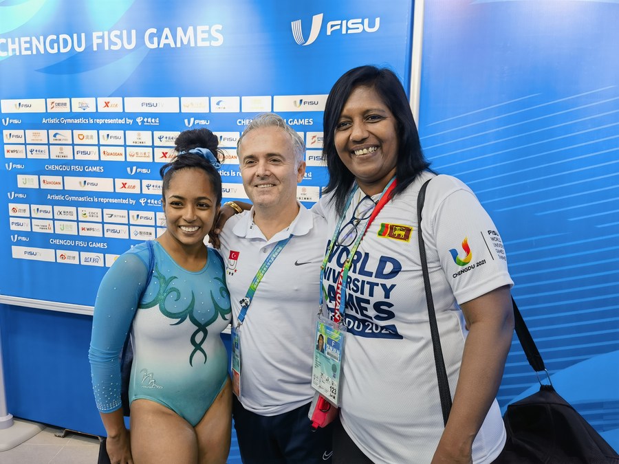 As Sri Lanka's first-ever and only artistic gymnast at the Universiade, Amaya Kalukottage received extra help and made friends in Chengdu.