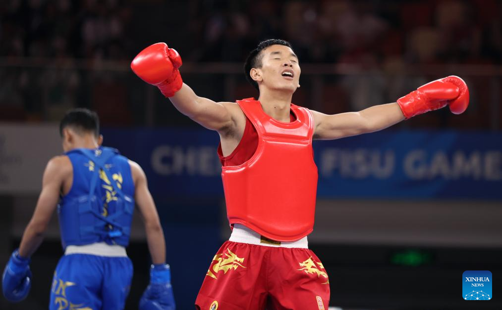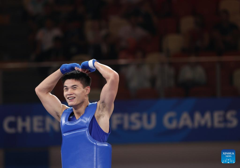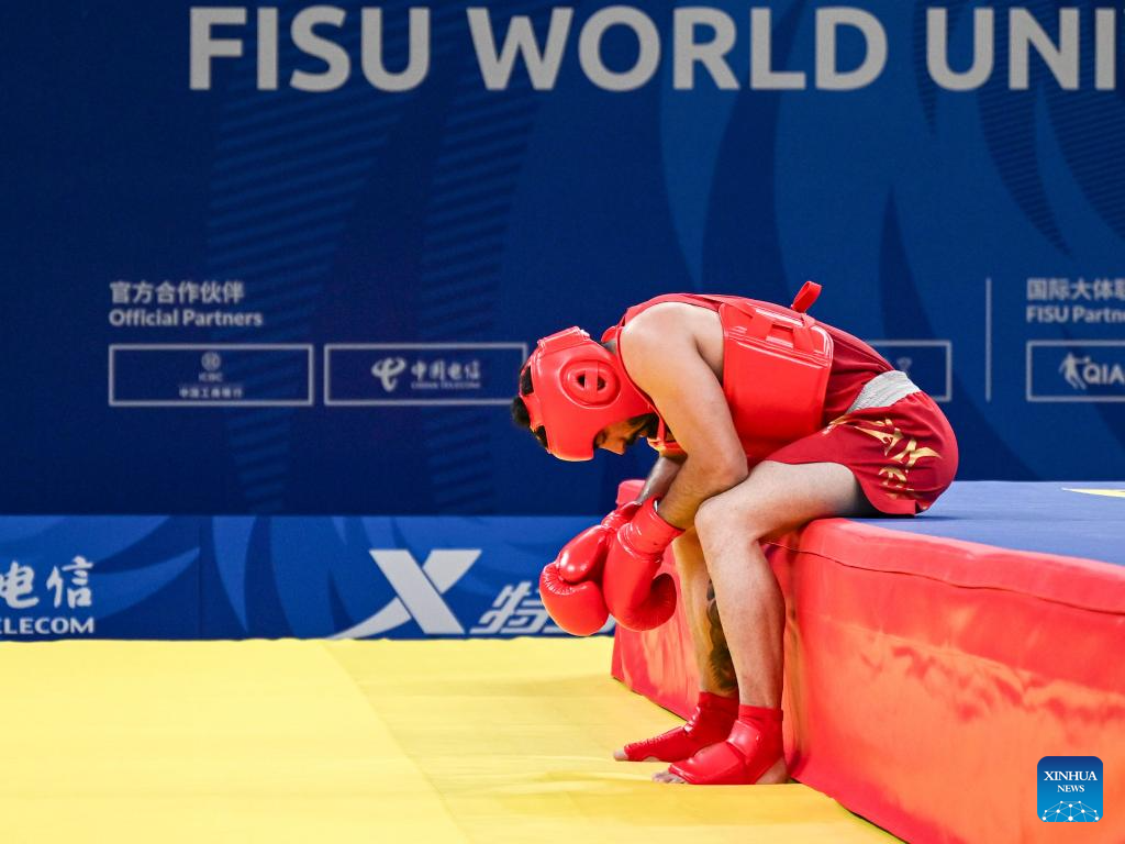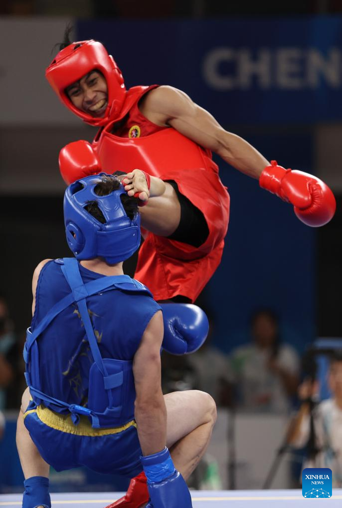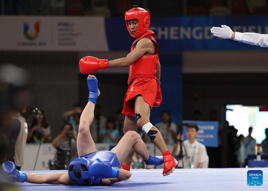 CHENGDU, Aug. 3 (Xinhua) -- Chinese athletes collected four Sanda golds in the Wushu tournament, which concluded here on Thursday at the Chengdu Universiade.
