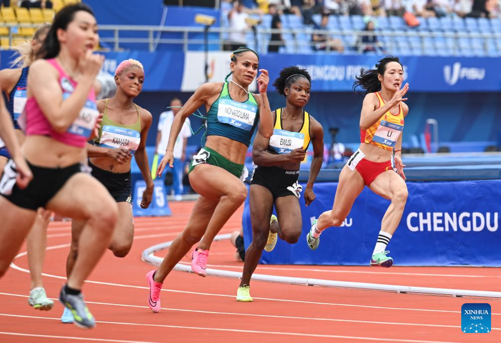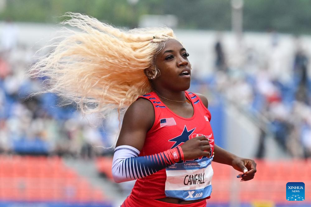 Toni Lee Canfall of the United States competes during the Athletics Women's 200m Round 1 Heats at the 31st FISU Summer World University Games in Chengdu, southwest China's Sichuan Province, Aug. 3, 2023. (Xinhua/Wang Xi)