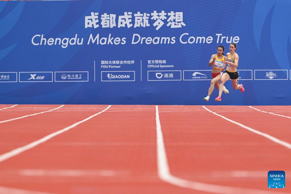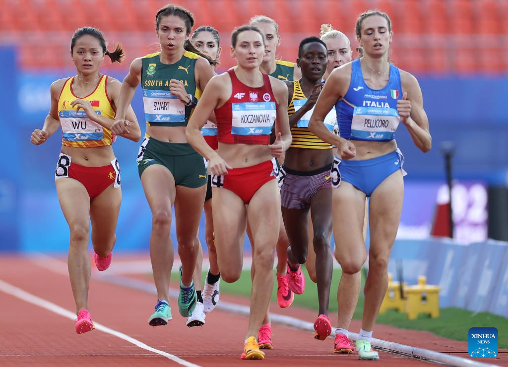 Wu Hongjiao (1st L) of China competes during the athletics women's 800m final at the 31st FISU Summer World University Games in Chengdu, southwest China's Sichuan Province, Aug. 3, 2023. (Xinhua/Jia Haocheng)