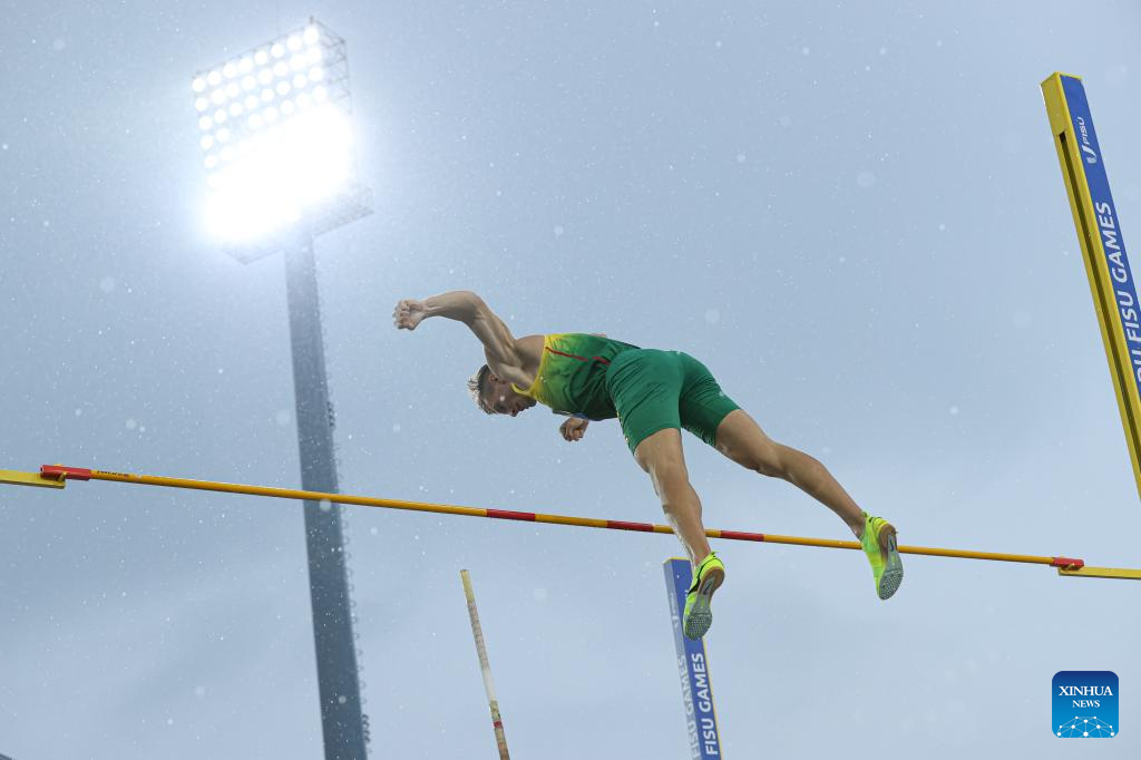 Edgaras Benkunskas of Lithuania competes during the Pole Vault of the Athletics Men's Decathlon competition at the 31st FISU Summer World University Games in Chengdu, southwest China's Sichuan Province, Aug. 3, 2023. (Xinhua/Li Jing)