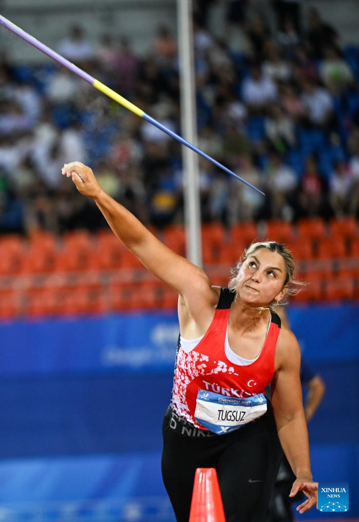 Eda Tugsuz of Türkiye competes during the athletics women's javalin throw final at the 31st FISU Summer World University Games in Chengdu, southwest China's Sichuan Province, Aug. 3, 2023. (Xinhua/Wang Xi)