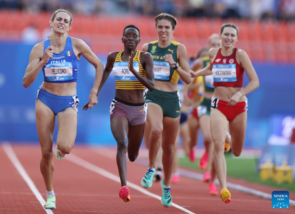 Laura Pellicoro (1st L) of Italy competes during the athletics women's 800m final at the 31st FISU Summer World University Games in Chengdu, southwest China's Sichuan Province, Aug. 3, 2023. (Xinhua/Jia Haocheng)