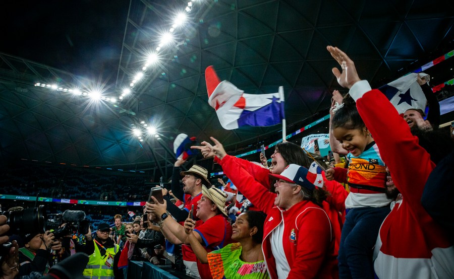 Supporters of Panama cheer during their match against France at the 2023 FIFA Women's World Cup in Sydney, Australia, on Aug. 2, 2023. (Photo by Hu Jingchen/Xinhua)