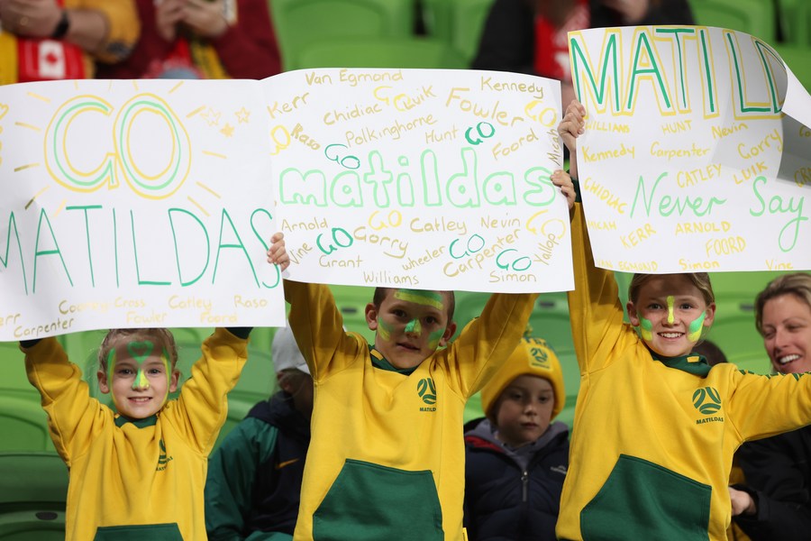 Supporters of Australia cheer for the team before their match against Canada at the 2023 FIFA Women's World Cup in Melbourne, Australia, on July 31, 2023. (Xinhua/Ding Xu)