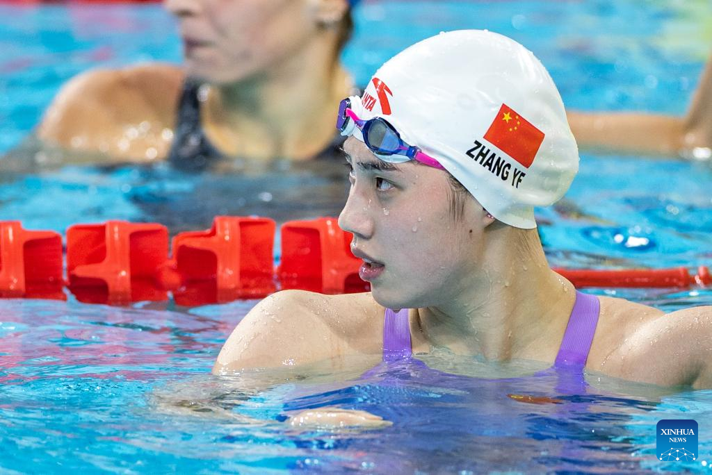 CHENGDU, Aug. 3 (Xinhua) -- Olympic gold medalist Zhang Yufei bagged her fourth and China's sixth swimming gold at the Chengdu Universiade here on Thursday, as she emerged victorious in the women's 100m freestyle.