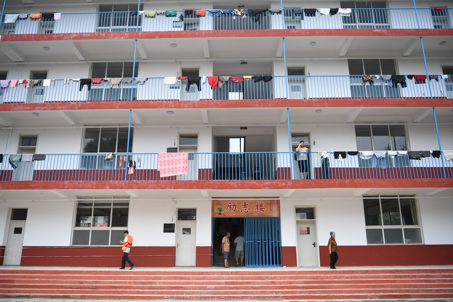 This photo taken on Aug. 3, 2023 shows a settlement site inside a middle school in Zhuozhou, north China's Hebei Province. (Xinhua/Mu Yu)