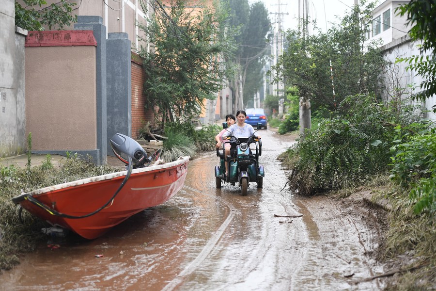 Residents ride an electric tricycle in Gaojiazhuang Village, Matou Town of Zhuozhou, north China's Hebei Province, Aug. 3, 2023. (Xinhua/Mu Yu)■