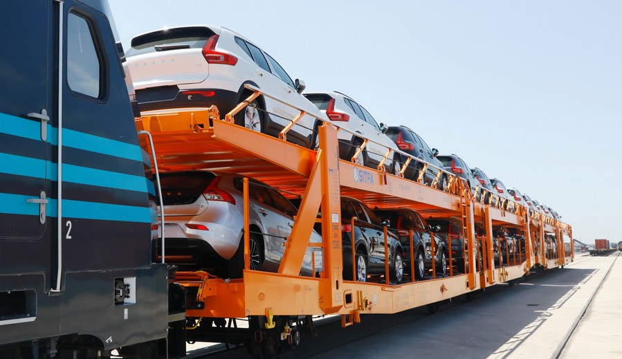 Photo taken on July 4, 2019 shows the European-made Volvo vehicles at the Port of Ghent in Belgium. (Xinhua/Pan Geping)