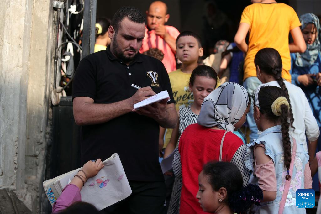 SHARQIA, Egypt, Aug. 4 (Xinhua) -- In Bishat Amer village in northeast Egypt's Sharqia Province, 34-year-old librarian Mohamed Abel-Aziz often sees dozens of children filling the entrance and hallway stairs of his house, where they read, draw, or practise handwriting.