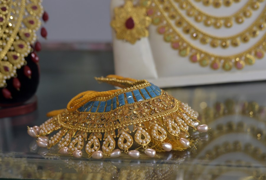 This photo taken on Aug. 2, 2023 shows handmade jewelry products at a workshop at Vakurta village in Savar, on the outskirts of Dhaka, Bangladesh. (Xinhua)