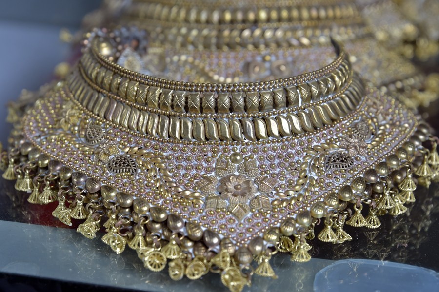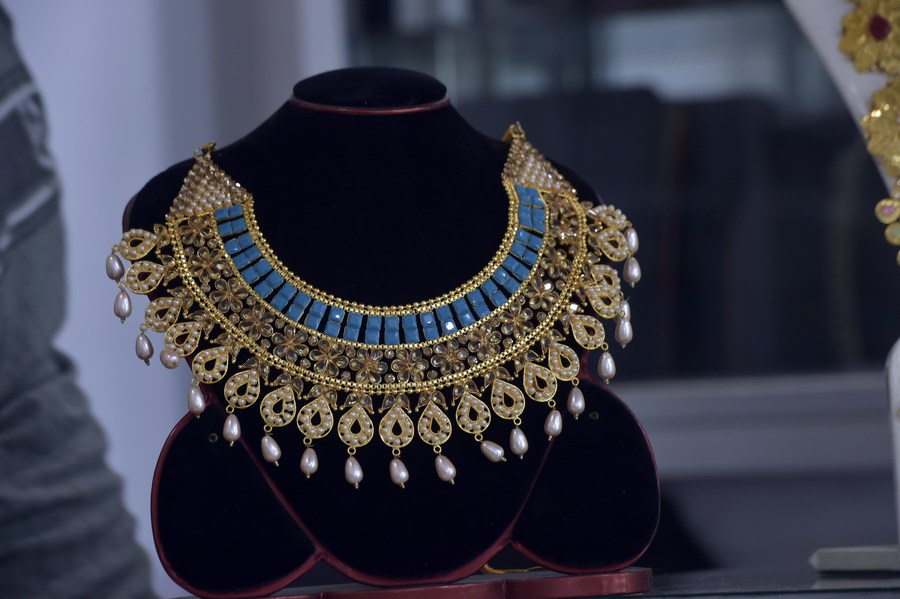 Photo taken on Aug. 2, 2023 shows handmade jewelry products at a shop at Vakurta village in Savar, on the outskirts of Dhaka, Bangladesh.(Xinhua)
