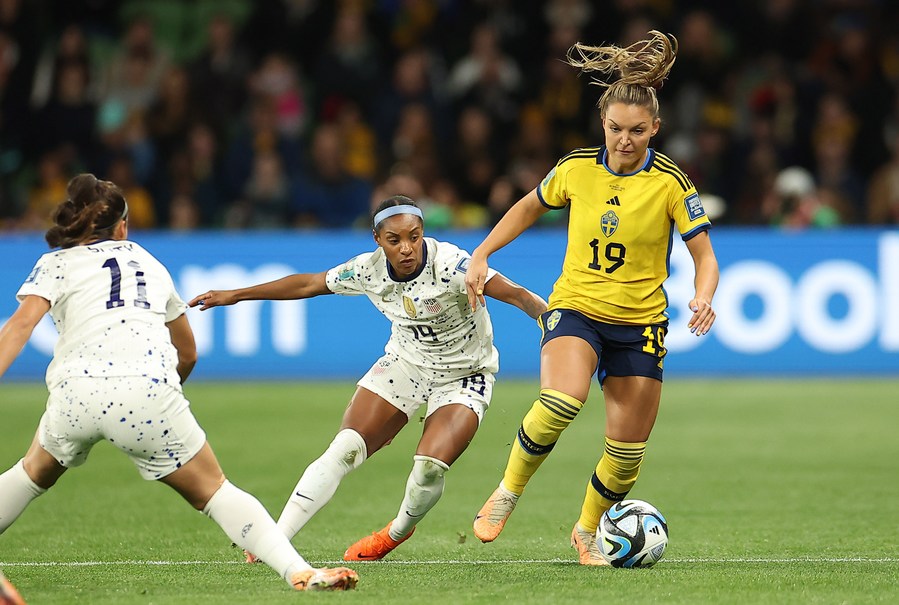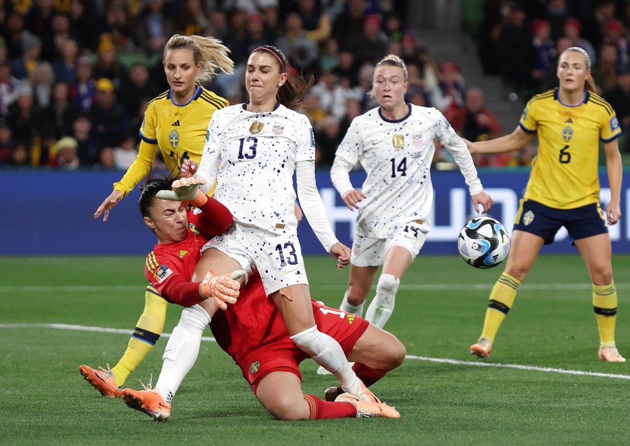 MELBOURNE, Aug. 6 (Xinhua) -- The United States' hopes of a third consecutive Women's World Cup title were dashed as they dominated their round of 16 tie against Sweden, but were dramatically defeated 5-4 on penalties after a 0-0 draw.