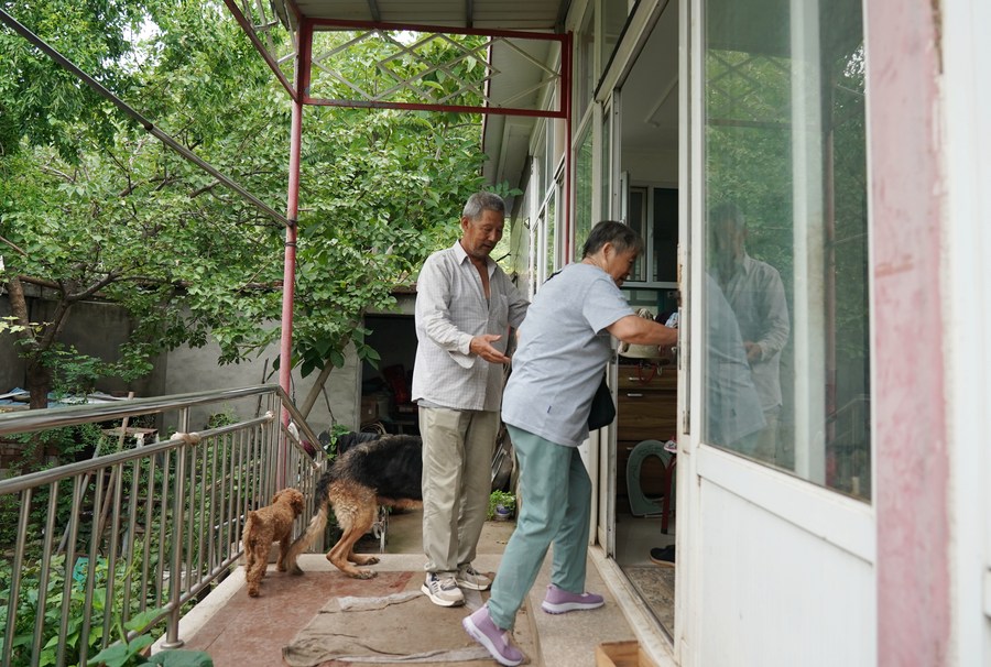 Villagers who have been evacuated to a settlement site return to their home in Koutou Village of Qinglonghu Town in Fangshan District of Beijing, capital of China, Aug. 5, 2023. (Xinhua/Zhang Chenlin)